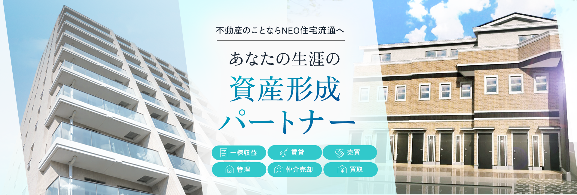 株式会社NEO住宅流通は、大阪府東大阪市を拠点に関西全域の物件を幅広く取り扱っています。 主に資産運用や不動産投資を目的とした個人投資家・法人の方に向けて、中古戸建から収益物件、管理までトータルでサポートしています。初めて不動産投資に挑戦される方でも安心して進められるよう、物件のご提案から購入、運営、売却まで一貫してご相談いただける体制を整えています。 お客様一人ひとりの目的や状況に寄り添ったご提案をさせて頂きますので、不動産売買の際はお任せください。 地域に根ざした情報力と柔軟な対応力で、長期的な資産形成をしっかりサポートいたします。 厳選した非公開物件の紹介も可能ですので、お気軽にお問い合わせください。